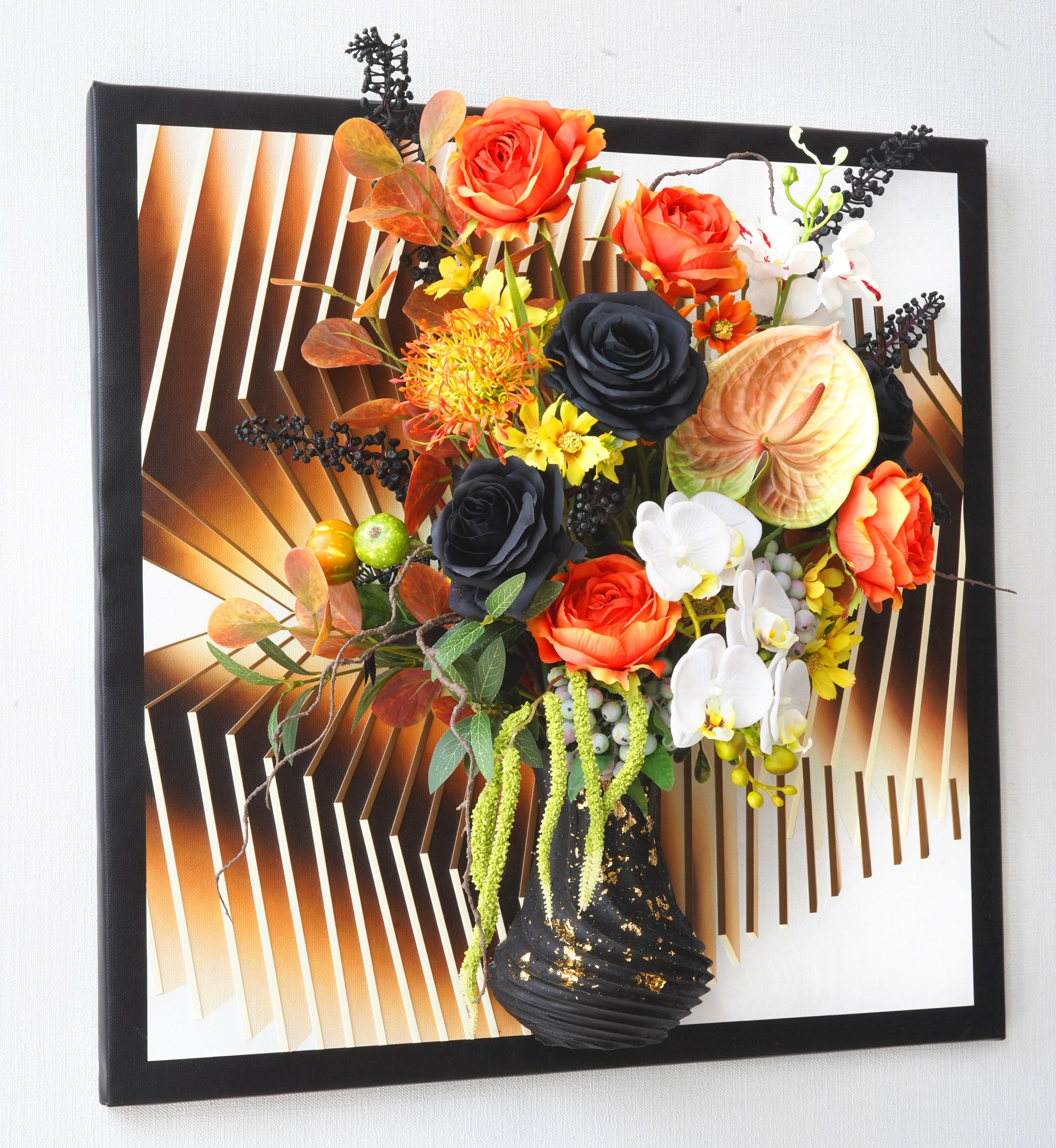 Set not merely against, but within a framework of Golden Celestial Geometry, this piece redefines depth. Inspired by the precise harmony of the cosmos—the golden ratio, orbital paths, and astral grids—the background is a luminous architecture of metallic gold. This isn't just a pattern; it's a modern, gilded universe that cradles the vibrant, three-dimensional flora, creating a stunning dialogue between the earthy and the ethereal, the natural and the engineered.