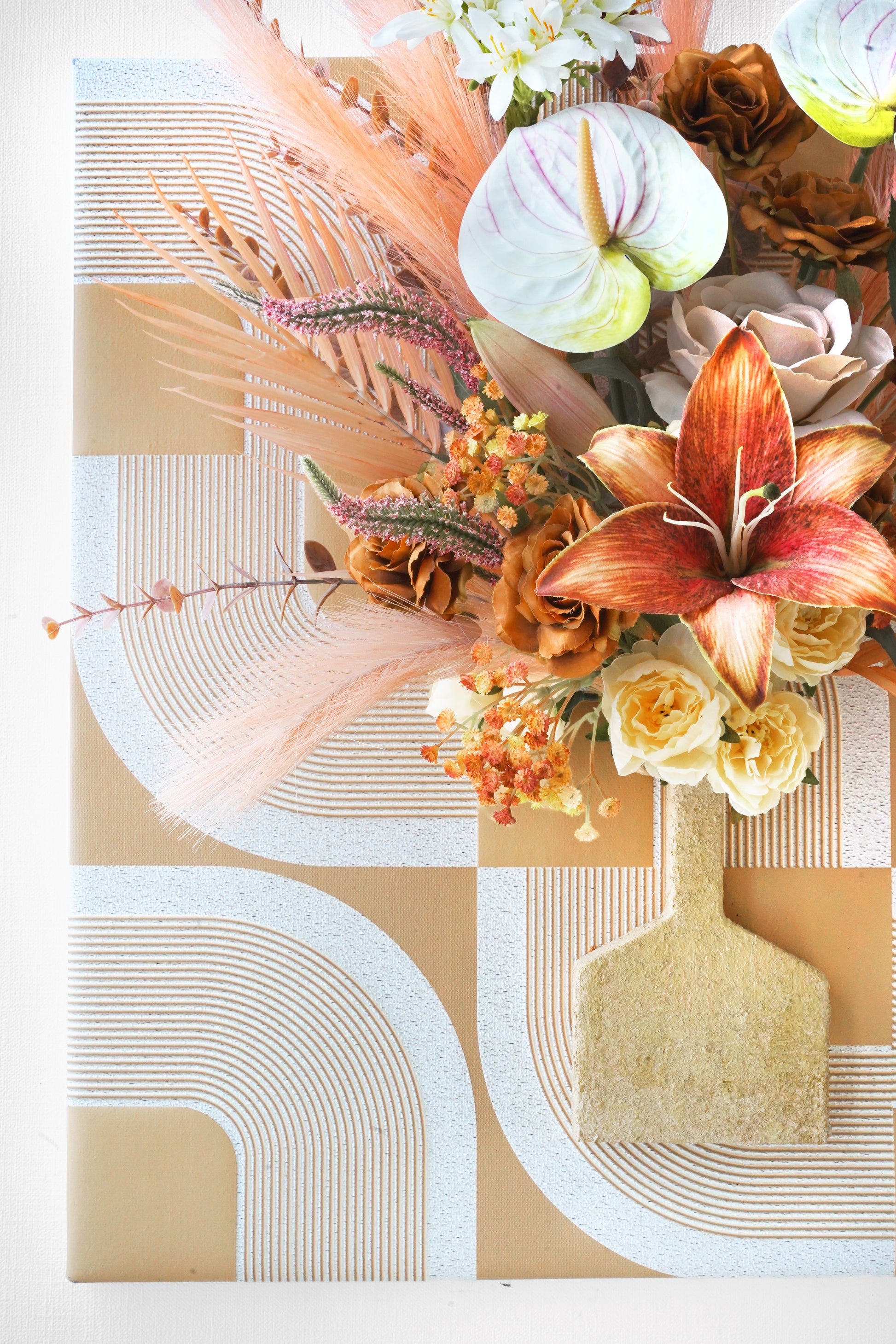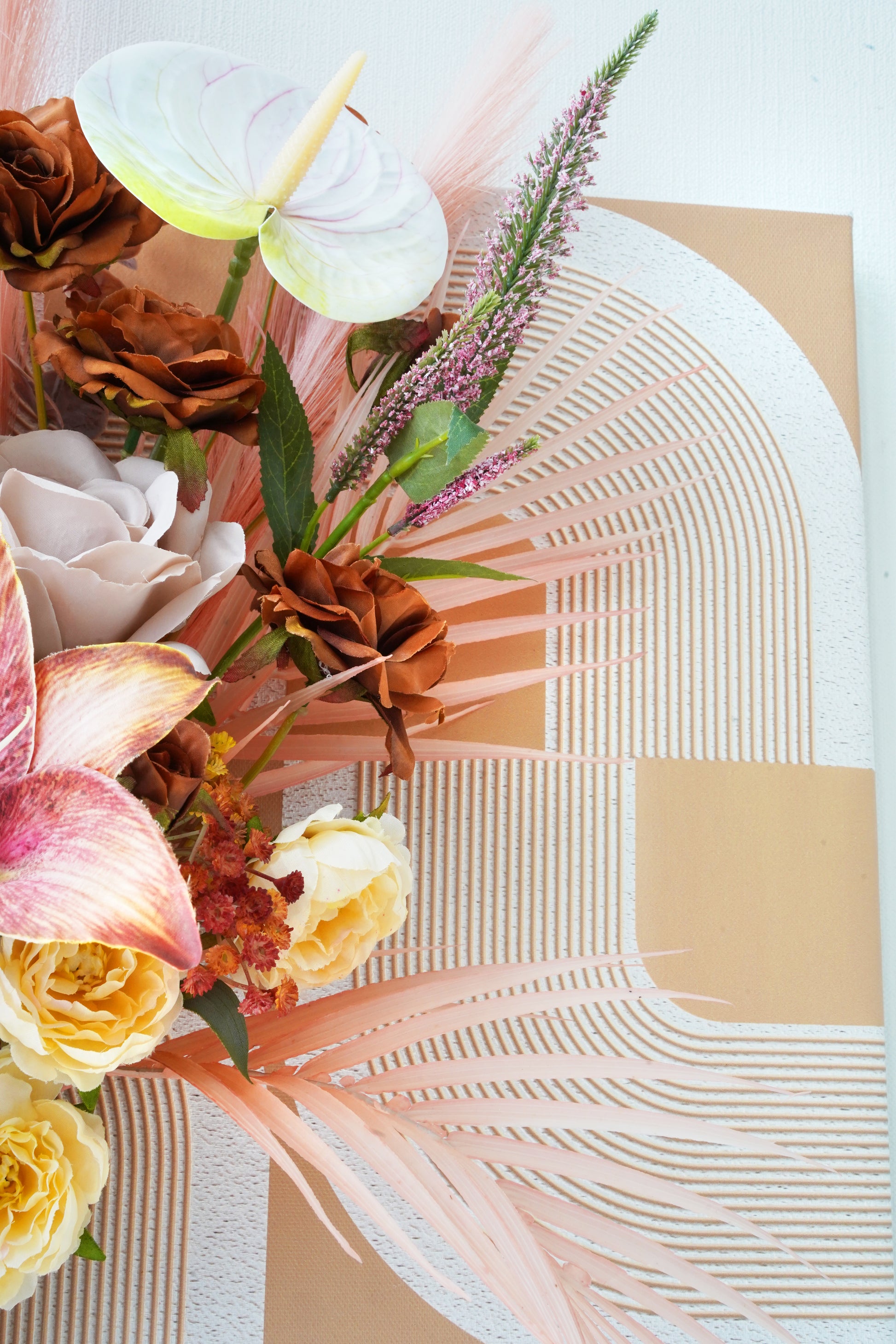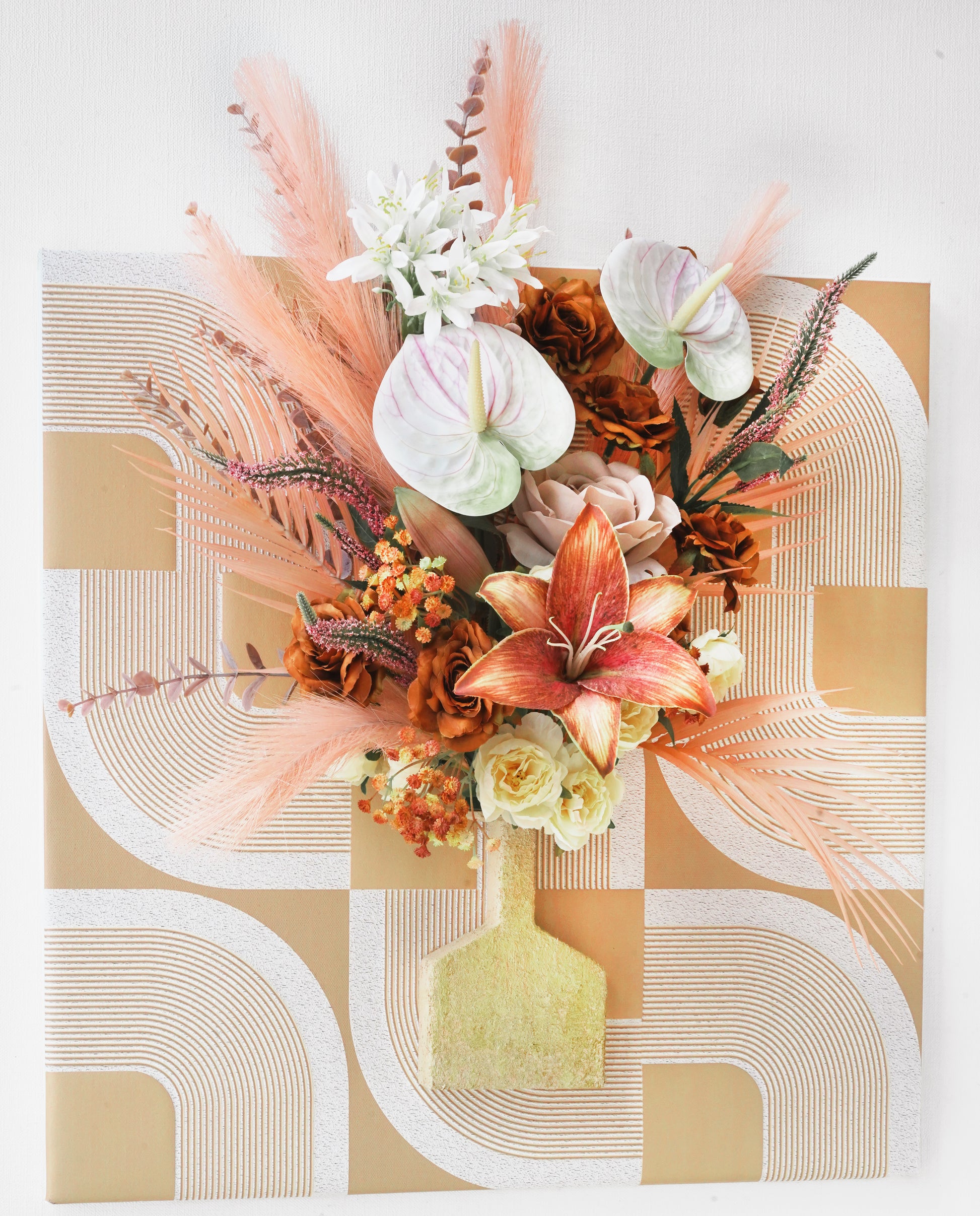 Breathe life and sophisticated texture into your walls. This unique piece artfully arranges sculptural blooms—bold Anthurium, rich Coffee Roses, elegant Agapanthus, serene Lilies, and airy Baby's Breath—accompanied by the feathery touch of Pampas Grass and delicate Rose Buds.