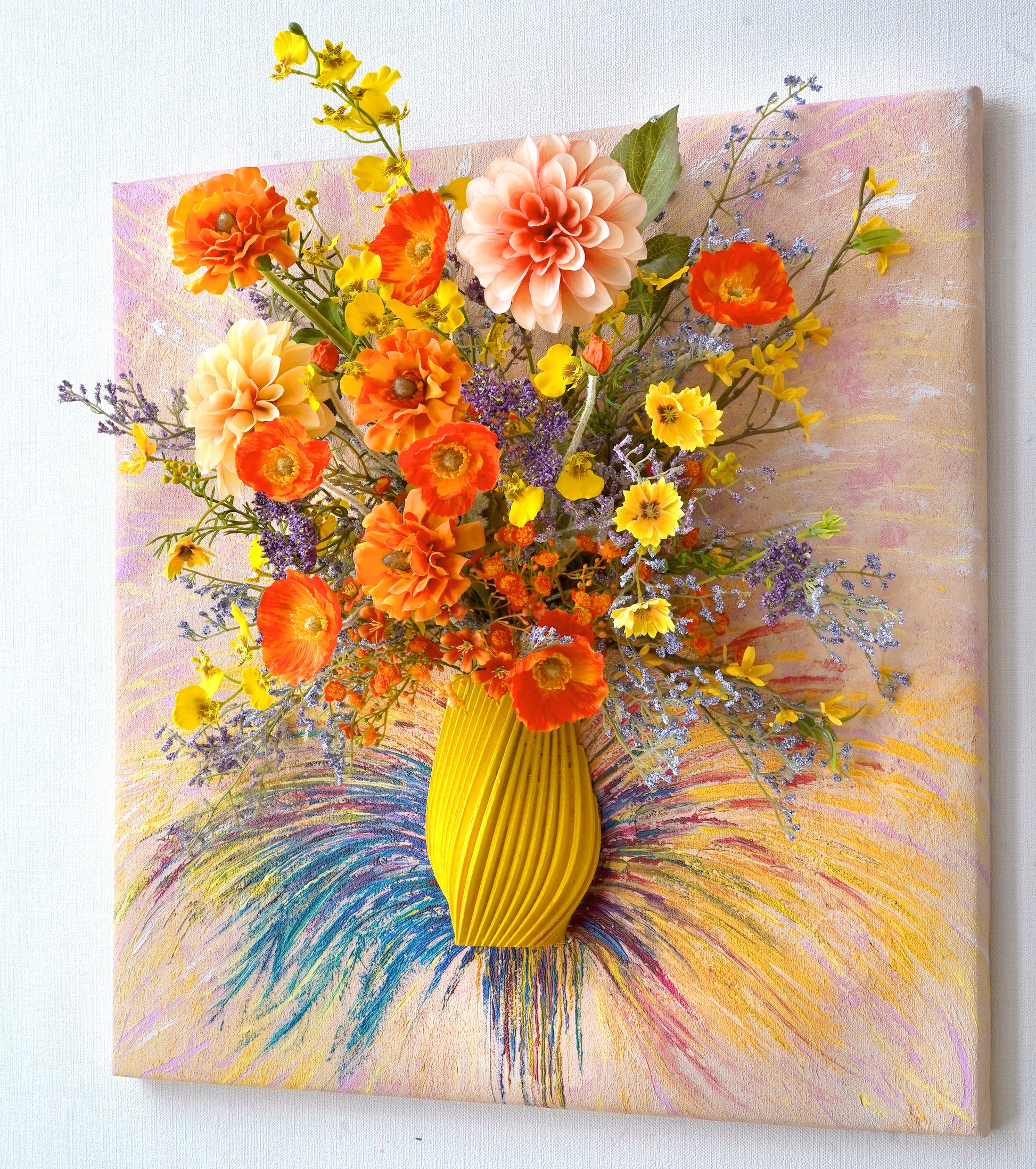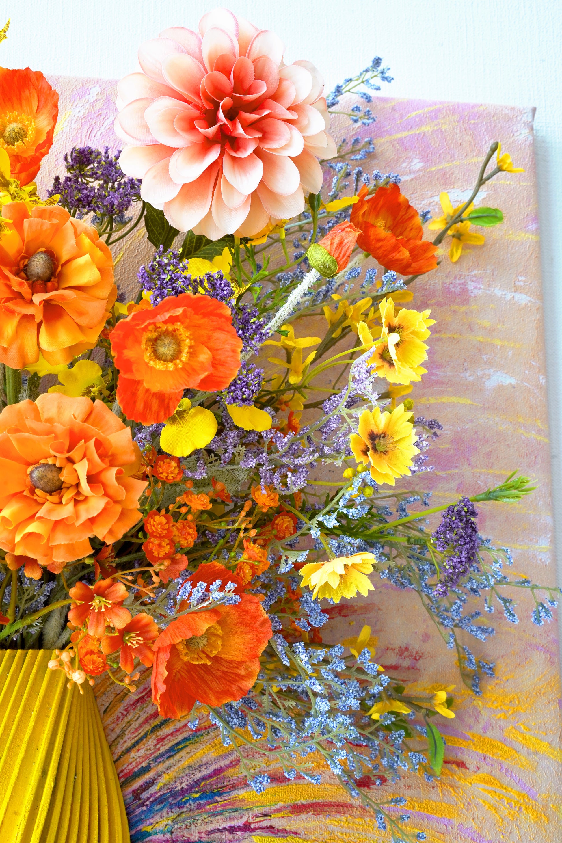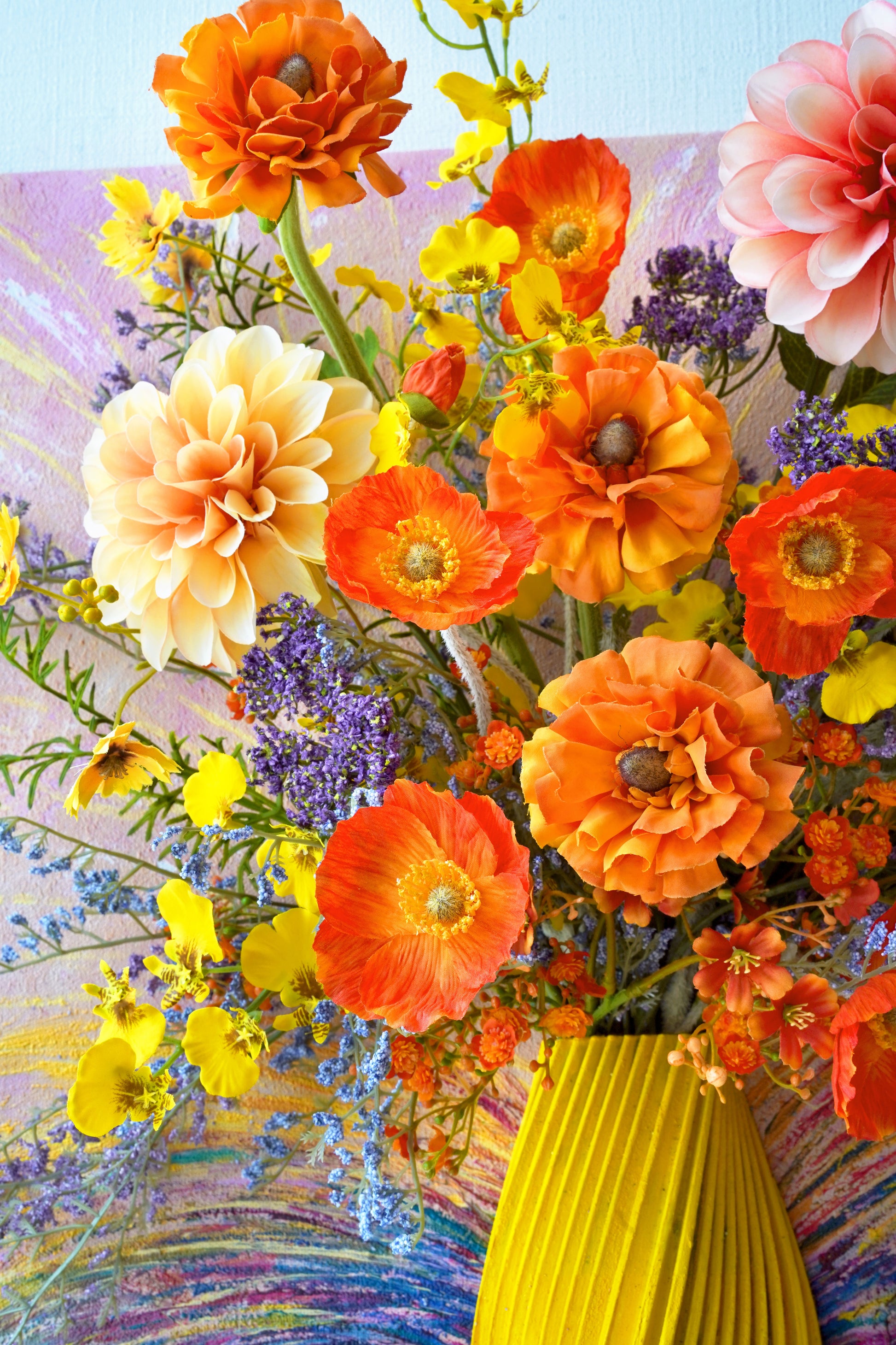 This piece captures the delicate whisper of Poppy and Ranunculus, the joyful dance of Oncidium orchids, and the soft, airy grace of Dahlia, Ammi Visnaga, and Baby's Breath.