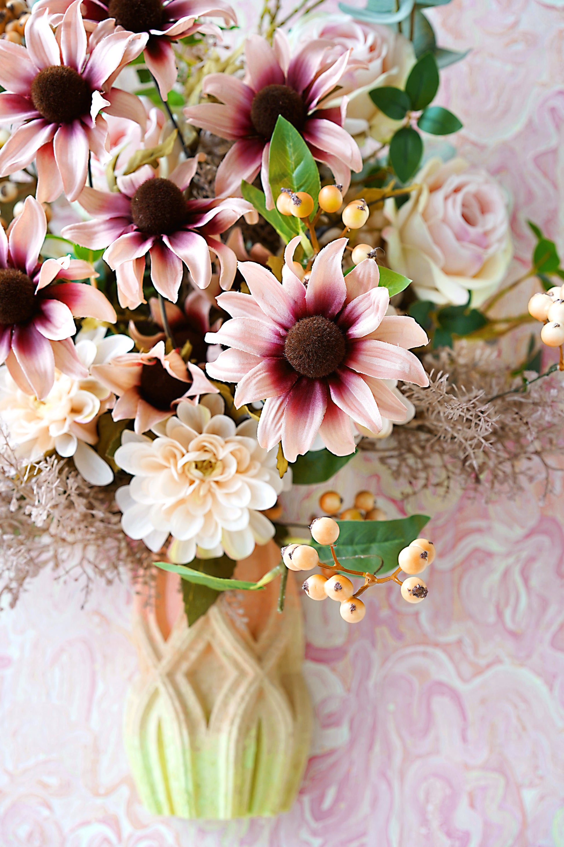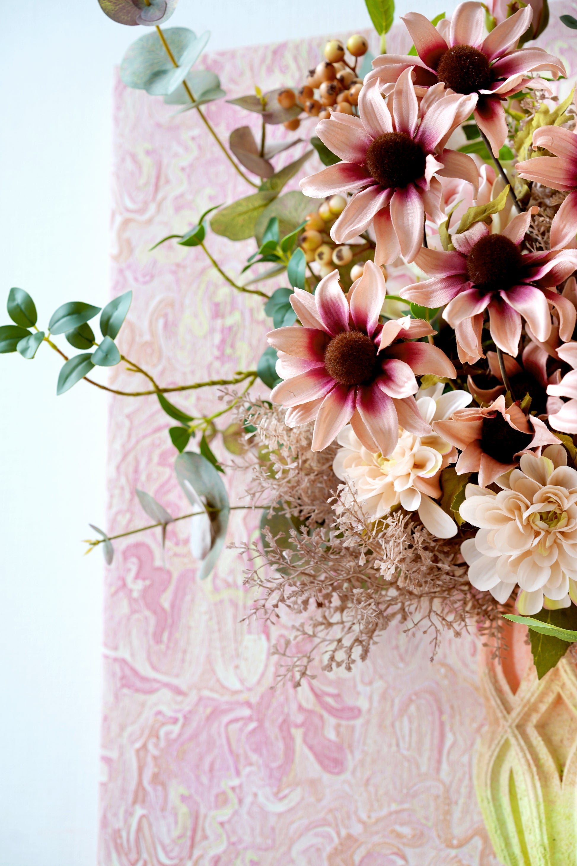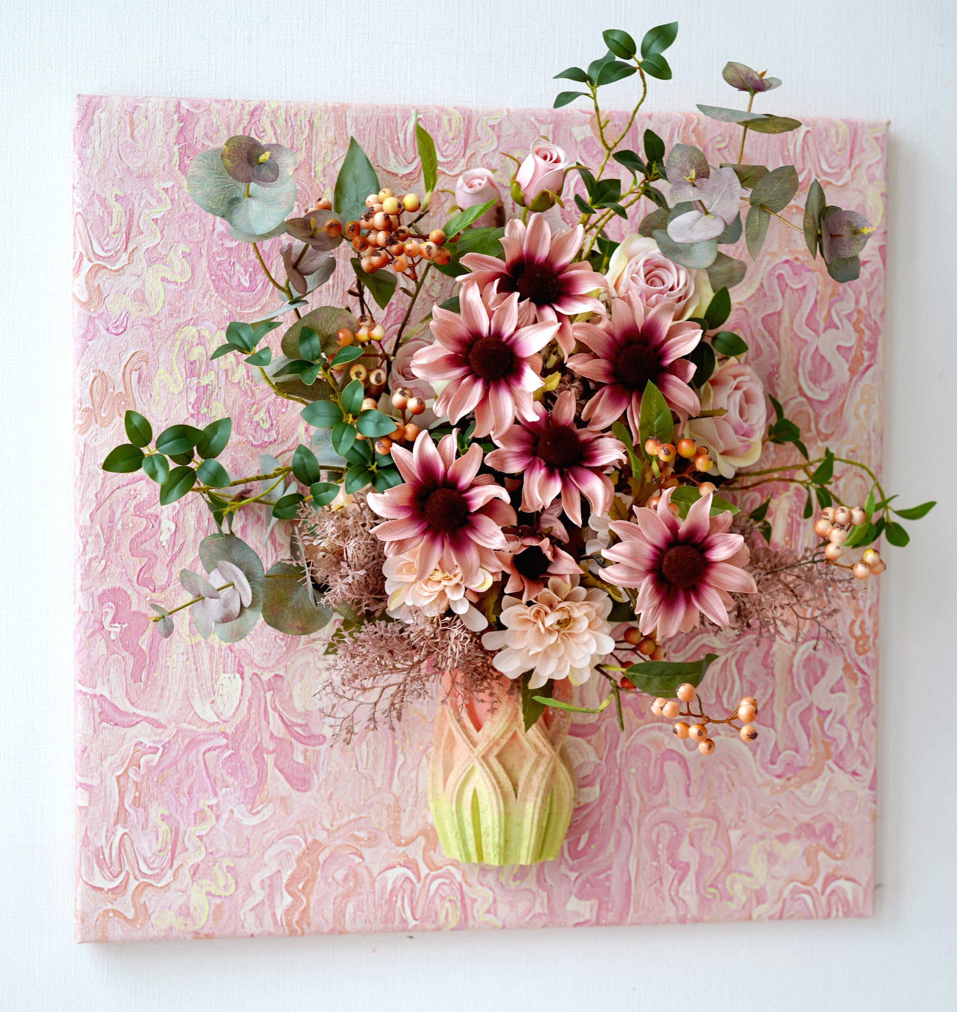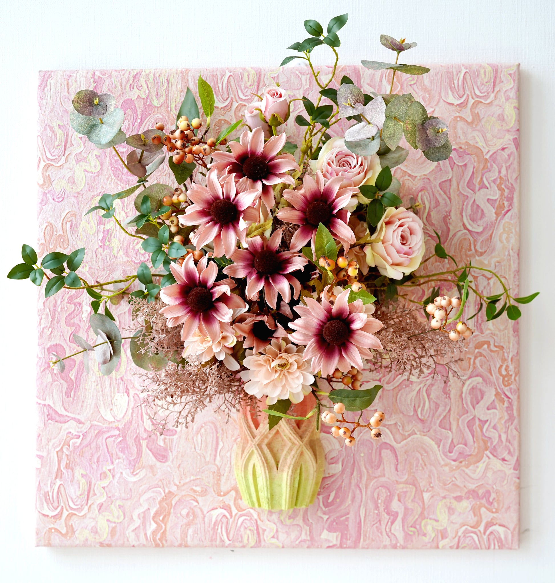 Step into a dreamy, artful universe. Our 3D wall art combines a vintage-color daisies, dahlias, roses, and eucalyptus. More than decor—it's a statement. Bring timeless, artistic elegance to your space.