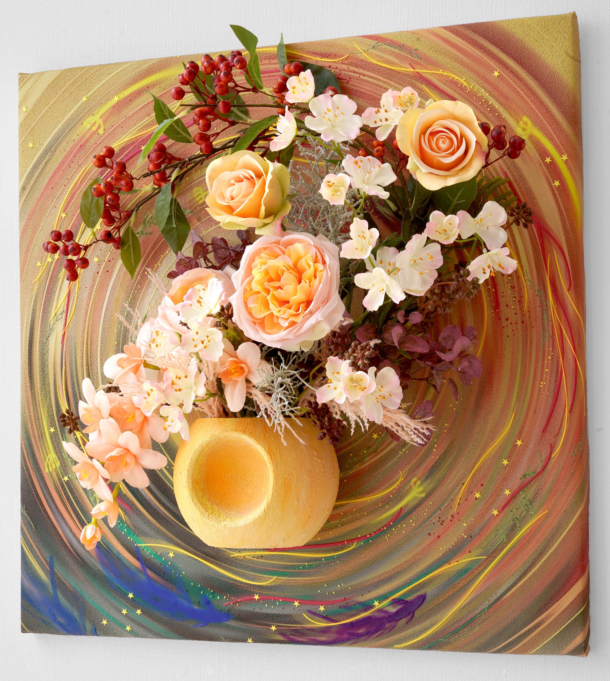 Bring nature's warmest palette to your walls. Our stunning 3D art features a textured dance of Garden Roses, Berries, and Eucalyptus. A modern masterpiece that radiates from the center, bringing depth and organic elegance to any space.