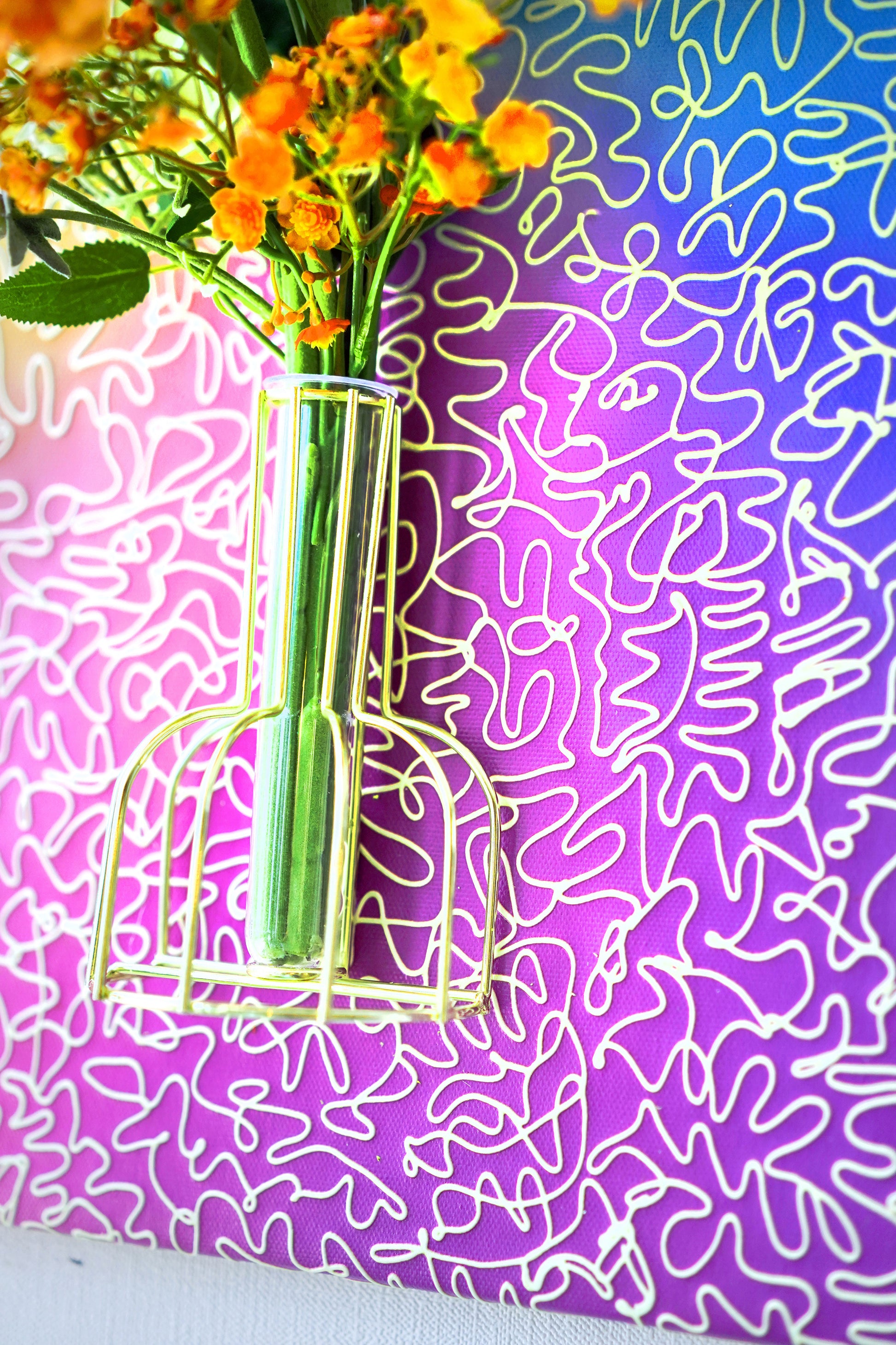 Those fluid curves resemble scattered musical notes carried by the wind, meandering playfully across the composition. At times, they twist into swirling vortices; at others, they stretch into gentle waves, guiding the viewer’s gaze in a graceful dance between colors.