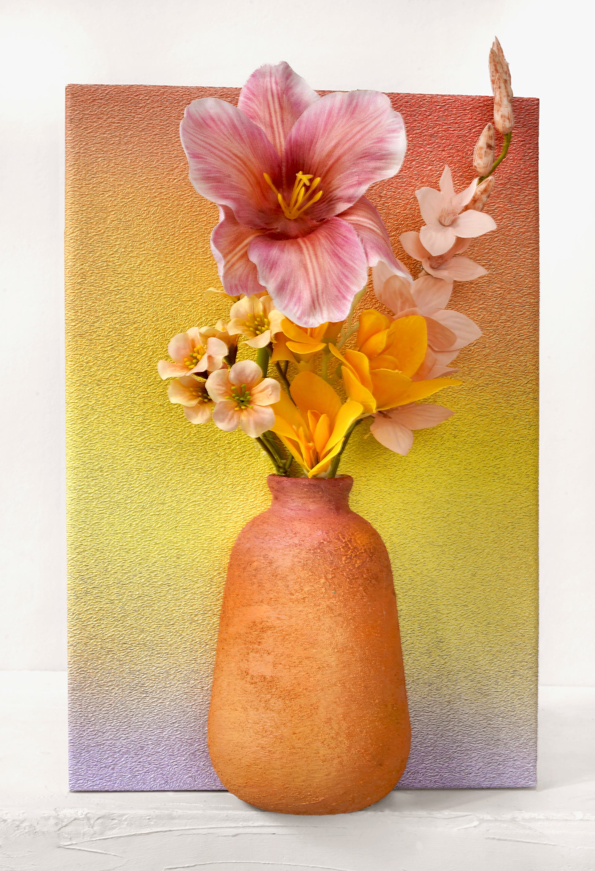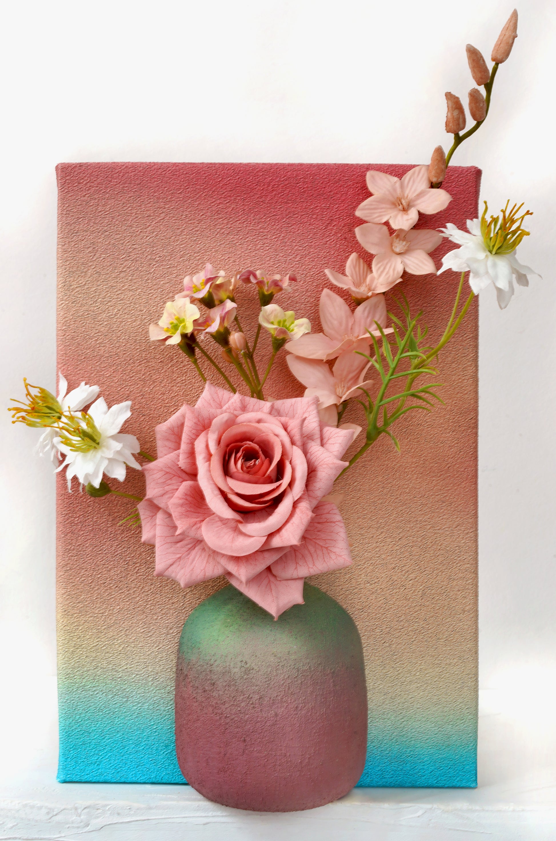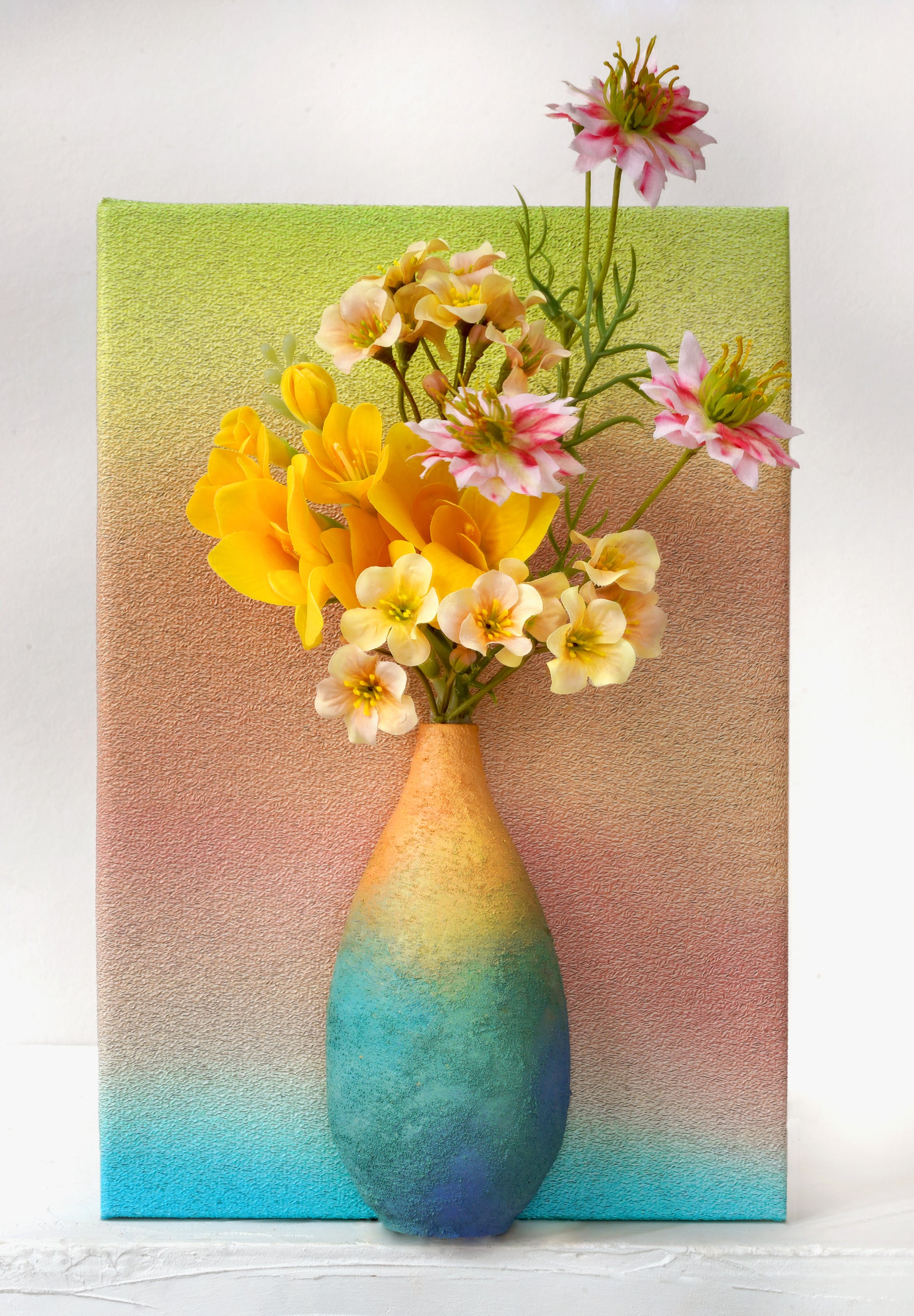 Bring the tranquility and beauty of a spring garden into your home with our Canvas Wall Art Set. This unique collection features four vertical canvases, each adorned with a gracefully painted vase and a delicate arrangement of artificial flowers that seem to spring forth from the surface. The soft pastel backgrounds blend seamlessly from one canvas to the next, creating a soothing gradient that enhances any room's decor.
